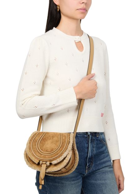 Reveal Chloe's Marcie shoulder bag, a masterpiece of elegance and functionality. Crafted from smooth leather with signature saddle stitching, it features an adjustable thin strap and a flap closure. The interior pocket and gold finish add a touch of sophistication, making it a must-have accessory.