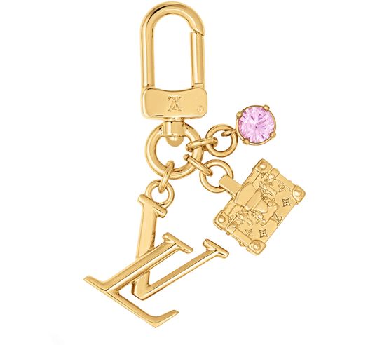 The Charms LV Malle key holder is a precious tribute to the House’s heritage and know-how. Styled in gold-tone metal, it features a trio of delicately crafted charms: the LV Initials, a colorful crystal and a finely detailed miniature Louis Vuitton trunk. A handy and eye-catching accessory with an original signature touch.