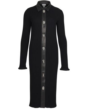 Bottega Veneta brings a rock'n'roll touch to this merino cotton midi dress. This piece can be worn open or closed, and is easily adjusted using the iconic buttons that contrast with the texture.