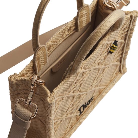 Reveal Dior's Mini Dior Book Tote with Strap, featuring embroidered Dior signature on the front, top handles, and an adjustable and removable Dior signature shoulder strap. This compact tote also includes an interior slip pocket, blending elegance and practicality for a refined touch to any ensemble.