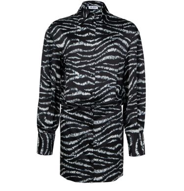 • Description : front buttoned closure, visible stitching, shirt collar, mini dress, long-sleeved, animal print, cuffed sleeves, buttoned cuffs.
