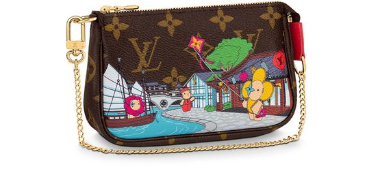 For the Vivienne Holidays collection, the Mini Pochette Accessoires comes with an exclusive print on Monogram canvas featuring Louis Vuitton’s globetrotting mascot Vivienne. In this special collector’s edition, she’s on her way to the LV boutique in Chengdu, seeing a sampan and holding a colorful Monogram Flower kite along the way. A practical accessory, and a marvelous gift for Monogram lovers.