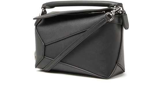 Loewe's Mini Puzzle Bag is a versatile mini bag with a handle and detachable strap for multiple styling options. It features a flap closure and embossed logo for a chic touch. This compact bag can be worn in the hand or on the shoulder, making it perfect for everyday use.
