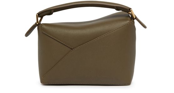 Loewe's Mini Puzzle Bag is a versatile mini bag with a handle and detachable strap for multiple styling options. It features a flap closure and embossed logo for a chic touch. This compact bag can be worn in the hand or on the shoulder, making it perfect for everyday use.
