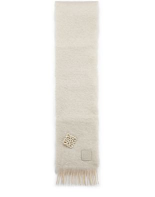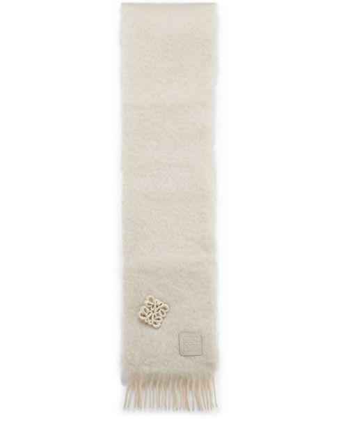 Loewe's embroidered mohair scarf is comfortable and stylish. Blue, with the brand's logo as an elegant metallic pattern, it is ideal for cooler seasons.