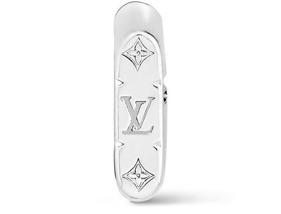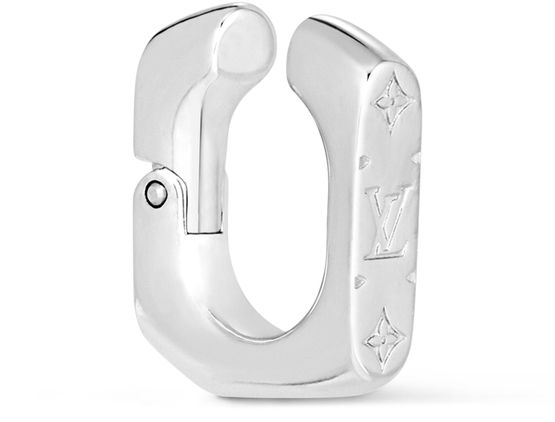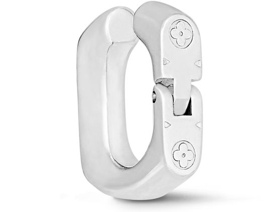 To complete the Monogram Chain lineup, the Maison introduces the Monogram Chain ear cuff. A cool finishing touch for the fashion-forward wardrobe, this modern piece is a finely crafted single link made from silver-tone brass, and is impeccably engraved with mini Monogram motifs. The easy-to-open mechanism makes it simple to place and wear.