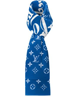 A statement accessory from the season’s collection, the Monogram Colours Stole is generously proportioned and beautifully woven from a soft, lightweight blend of cotton and silk. The printed all over Monogram pattern is accented with a new signature: 'The Louis Vuitton Lovers Presents' in a variety of font styles. An on-trend piece for the House's devotees.
