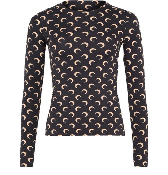 Marine Serre's Moon printed jersey Second Skin crewneck top showcases a fitted waist and regular length, perfect for a stylish silhouette. With long-sleeved design and all-over print, it features a printed logo at the back and visible stitching, making it a standout piece in any modern wardrobe.