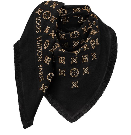 Rich embellishments and a luxurious fabric give this More Monogram shawl elegant day-to-evening appeal. It is crafted from a blend of wool and silk and embellished with an allover Monogram jacquard weave and polished micro-studs. A Louis Vuitton signature and fringed edges finish the design.