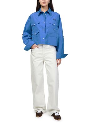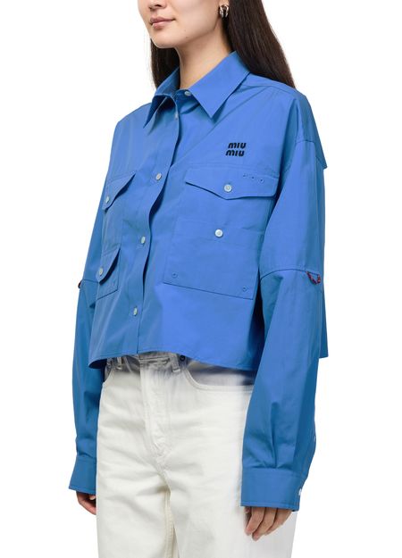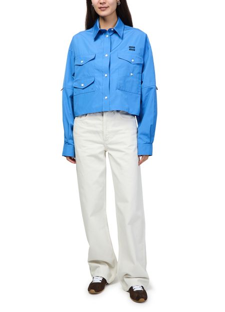 Reveal Miu Miu's multi-pocket shirt, featuring an embroidered "Miu Miu" logo and refined button fastening. Long, cuffed sleeves and two breast patch pockets add a tailored touch, while the crisp silhouette ensures versatile styling for both casual and elevated looks.