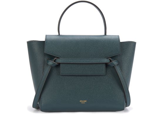 Celine's Nano belt bag in grained calfskin is a versatile companion, effortlessly transitioning from hand carry to shoulder or cross-body styles. With its elegant flap closure featuring a hidden metallic piece and zipped pocket beneath, this bag combines functionality with luxury. The removable leather strap and chic handle add to its allure.