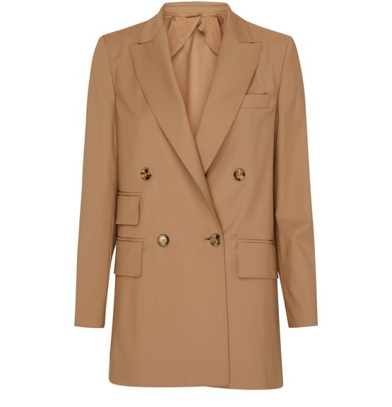 Max Mara's Nebbie double-breasted jacket is a sophisticated and timeless piece. This long-sleeved jacket features a front logo detail and is designed with a long silhouette. It has a double-breasted closure with 2 buttons, a breast pocket, and two front flap pockets for added functionality and style.