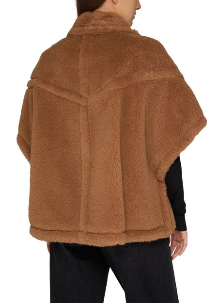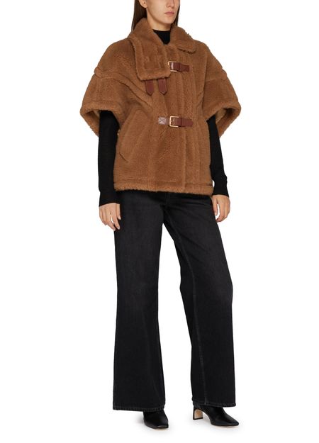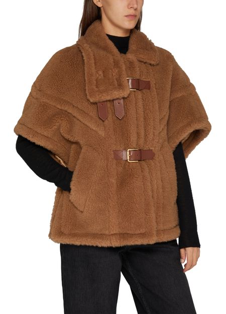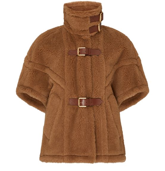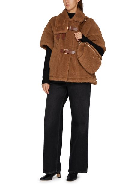 Max Mara's Newrodano cape showcases a short, elegant silhouette with short sleeves, perfect for layering. Its luxurious fur detail adds a touch of sophistication, while the appliquéd logo subtly elevates the design. With side welt pockets, this classic overcoat combines practicality and style, making it a timeless wardrobe essential.
