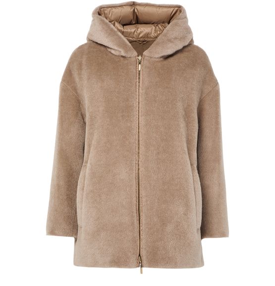 Introducing Max Mara's Olivia reversible padded jacket - THE CUBE. This casual jacket features a zipper closure and long sleeves, perfect for a modern silhouette. Crafted from soft-textured alpaca and wool fabric jacket, it includes goose-down padding and an interior in water-repellent quilted canvas, offering both style and practicality.