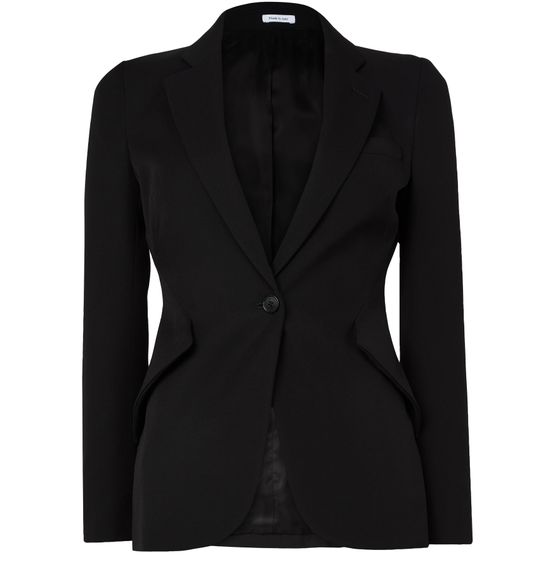 Reveal Alexander McQueen's one button jacket, a masterpiece of modern tailoring. This slim fit, short jacket features a button fastening and long sleeves, complemented by practical flap pockets. Perfect for any occasion, its sleek design and meticulous craftsmanship make it a standout piece in any wardrobe.