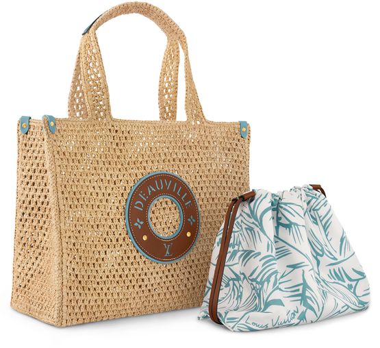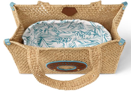 The season’s exclusive OnTheGo MM bag is beautifully hand-crafted in natural raffia with leather detailing, for a refined yet effortless look. Dedicated to the world’s foremost resorts, the range features each city’s name embossed on a tan leather patch, with trim in a distinctive colorway. The tote’s roomy interior makes it perfect for a day at the beach or pool.
