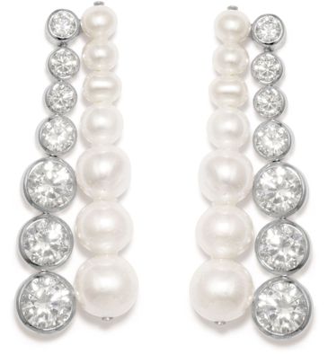 Indulge in Completedworks' pearled earrings, a harmonious blend of studded elegance and bead details. Crafted with a silver finish, these earrings captivate with their timeless beauty, sold as a pair to perfectly complement your style.