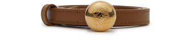Loewe's Pebble belt is a luxurious leather belt with the brand's signature buckle. It is designed to be worn on the hips and features gold-tone hardware for a touch of elegance.
