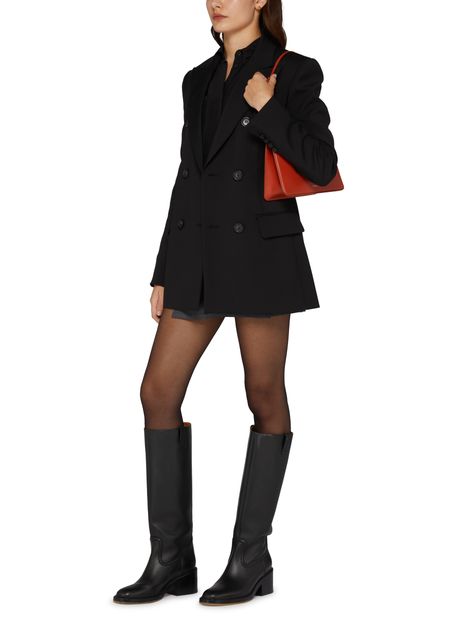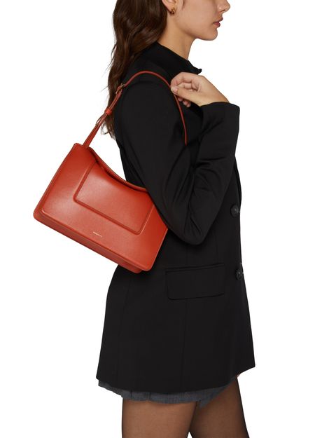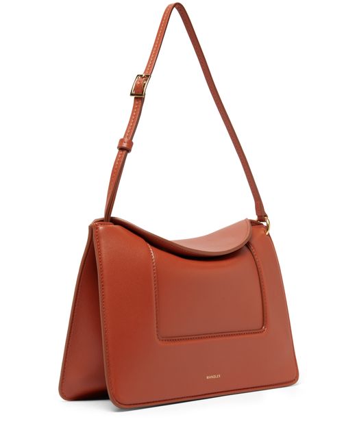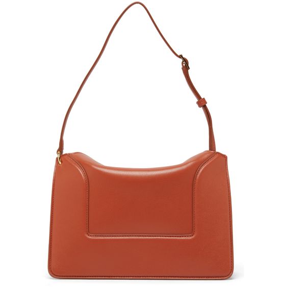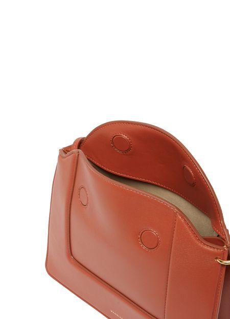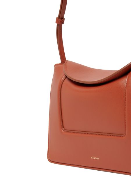 Wandler's Penelope bag showcases a sleek silhouette with a thin adjustable strap for versatile styling. Its visible stitching adds a touch of craftsmanship, while the flap closure ensures security. The front logo in gold letters elevates its elegance, making it a perfect companion for both casual outings and sophisticated events.