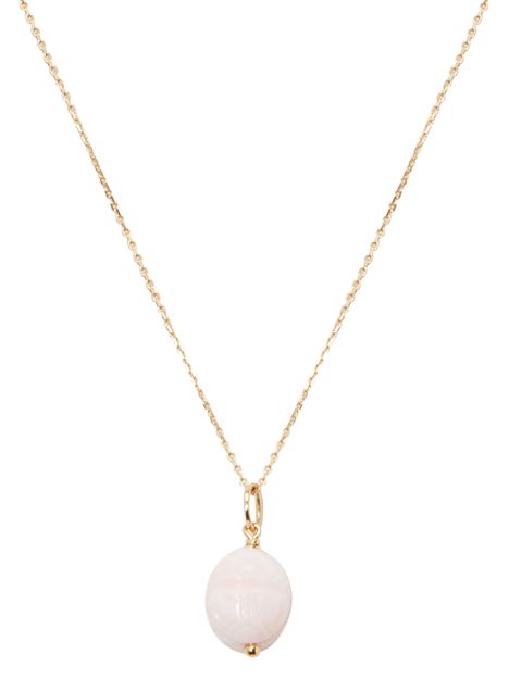 Admired for her bohemian and elegant creations, the designer Aurélie Bidermann dreams up original jewelry, in the vein of this pink opal scarab pendant. The label was inspired by Ancient Egypt to subtly reproduce 3 scarabs of different sizes from a delicate pastel-colored stone. Pair it with a long golden chain to adorn your décolletage.