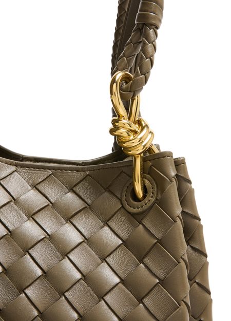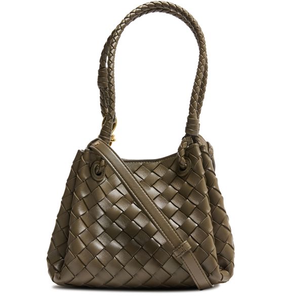 Reveal Bottega Veneta's Parachute small bag, a masterpiece of modern design. This shoulder bag showcases the iconic Intrecciato weaving technique, complemented by a wide, adjustable strap and double handles. Its large interior compartment and gold finish add a touch of elegance, making it a must-have for any fashion-forward wardrobe.