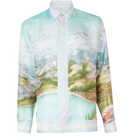Men will be charmed by this printed silk shirt's inventive pattern and a silhouette designed by Charaf Tajer. A must-have designed by Casablanca.