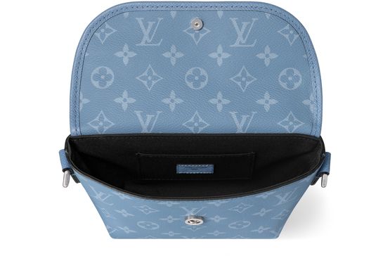 The Pulse Wearable Wallet, with its distinctive trapezoidal shape and vibrant color palette, combines Monogram coated canvas and Taiga cowhide leather to create a sporty accessory. This compact bag boasts a zipped pocket on the front flap for quick access to essentials. The interior is lined in black textile and includes a flat pocket.
