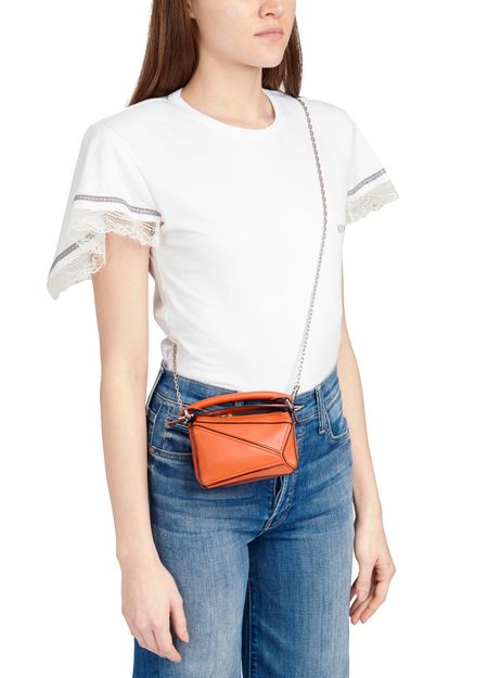 The Puzzle bag is the debut bag for LOEWE by Creative Director Jonathan Anderson. A cuboid shape and precise cutting technique create Puzzle's distinctive geometric lines. Loewe has unveiled this irresistible Puzzle Nano bag, which uses the Spanish fashion house's emblematic refined construction.
