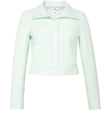 Reveal Courreges's Reedition jacket, crafted from vinyl for a striking, modern silhouette. The cropped fit and button fastening offer a sleek edge, while topstitched edges and a front logo add signature detail. Perfect for elevating both casual and refined looks with effortless versatility.