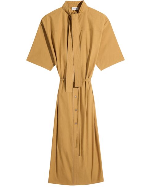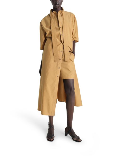 Reveal Lemaire's reversible shirt midi dress, featuring a dropped sleeve and short-sleeved silhouette. The button fastening and side slit add a modern edge, while side pockets offer practicality. This versatile piece transitions effortlessly from day to evening, making it a refined choice for any occasion.