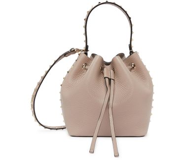 Valentino's Rockstud bucket bag is a small bucket bag that effortlessly combines elegance and versatility. Carry it in the hand, on the shoulder, or crossbody for a chic look. The iconic stud detail adds a touch of boldness, making it the perfect accessory for any occasion, day or night.