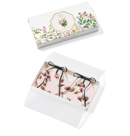 Discovered in Turkey, the rose proudly exhibits its exquisite corolla of petals in order to reveal the finesse of its scent. By contrast, spearmint offers freshness with its deep green serrated leaves and cob-shaped pink or lilac flowers. Characteristic from North Africa's souk markets and palaces, it stands out with its exhilarating and subtle scent