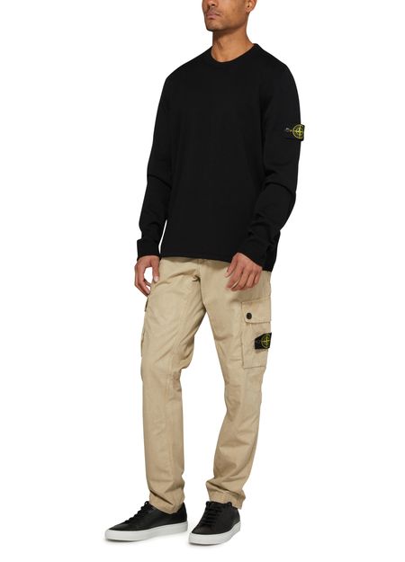 Stone Island's Round Neck sweater is a stylish and versatile garment. It features a logo patch on the sleeve and a logo at the back label, adding a touch of brand recognition. This long-sleeved, crew neck sweater is perfect for layering and is made with high-quality materials for durability and comfort.