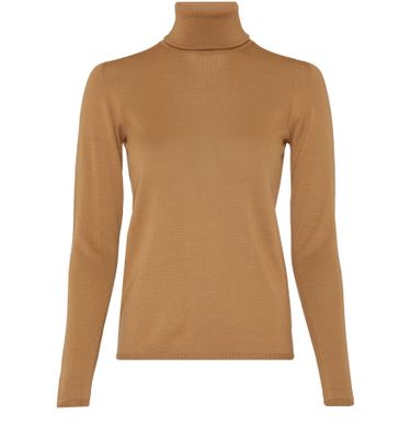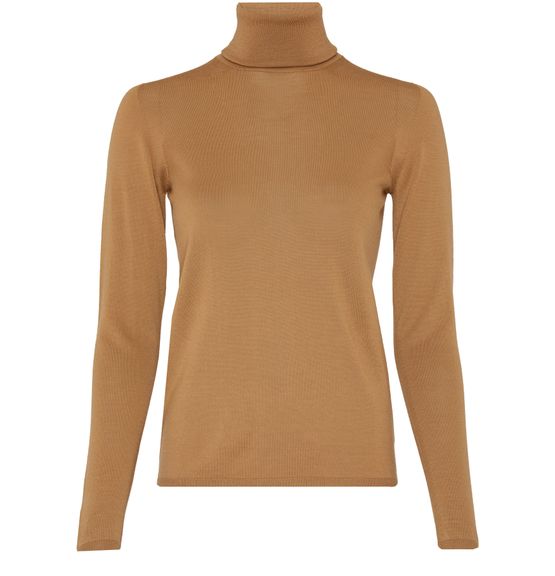 Max Mara's Saluto turtleneck wool sweater features a straight cut design with a mockneck collar for a sophisticated look. The visible stitching and topstitched edges add a touch of detail to this classic piece. Perfect for layering or wearing on its own, this sweater is a versatile addition to any wardrobe.