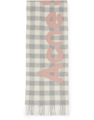 Acne's Scarf is a stylish accessory with a checked pattern and fringe details. It features embroidered details and a logo, adding a touch of sophistication to any outfit. The scarf also has fringed edges, giving it a modern and trendy look. Perfect for adding a touch of elegance to any ensemble.