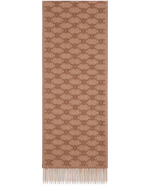 Celine's Scarf in monogram cashmere is a luxurious accessory that elevates any ensemble. Adorned with the brand's monogram and an all-over logo, it features exquisite fringe details and fringed edges that add a playful touch. Wrap yourself in this elegant piece for a statement of sophistication and style.