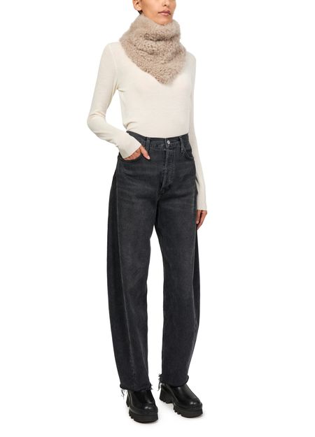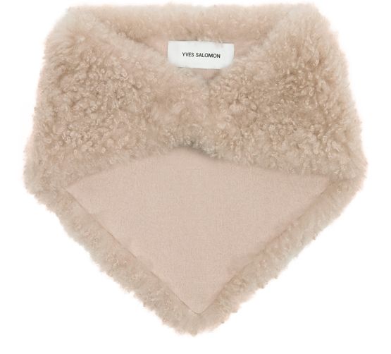 Unveil Yves Salomon's sheepskin bandanna, a perfect blend of elegance and modernity. This accessory features fringed edges and a printed logo, adding a touch of sophistication to any ensemble.