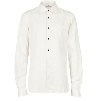 The Swedish fashion house mixes couture spirit and modernity with this traditional shirt covered in a textured floral design, in a sophisticated look created by Acne Studios.