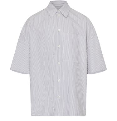 Bottega Veneta's short-sleeved shirt showcases a refined striped print, exuding effortless style. Its front buttoned closure and shirt collar offer a polished look, while the breast pocket adds practicality. The logo at the back label subtly highlights the brand’s elegance, making it a versatile piece for any wardrobe.