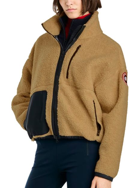 Reveal Canada Goose's Simcoe zipped jacket, a short, long-sleeved silhouette crafted from warm fabric with a high neck. The zipper closure, zipped breast pocket, and patch pockets add practical flair, while the padded texture and patch detail elevate its modern appeal—perfect for versatile, everyday style.