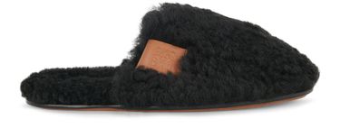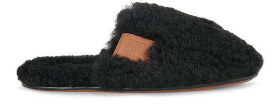Ideal for keeping the feet warm these easy to slip on shearling slippers are adorned with the Loewe logo and anagram.