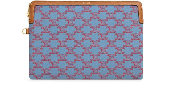 Discover the small pouch with strap in textile with Triomphe all over, with a versatile main compartment and a removable wrist strap. This accessory combines form and function, ideal for those seeking elegance and practicality in one refined item.