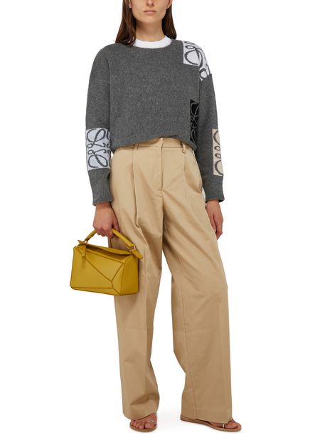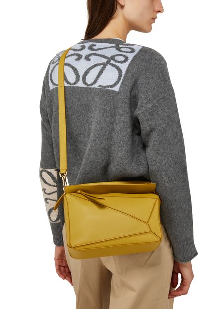 Loewe plays around with shapes on this surprising little puzzle bag. Its original design with geometric inserts gives it a modern and futuristic appearance.