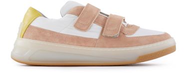 The Steffey trainers are designed by Acne Studios. These two-tone shoes feature a contrast heel patch. They fasten using two large pieces of velcro.
