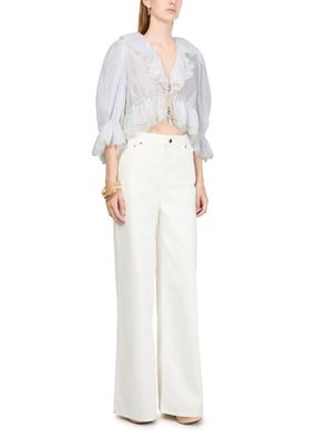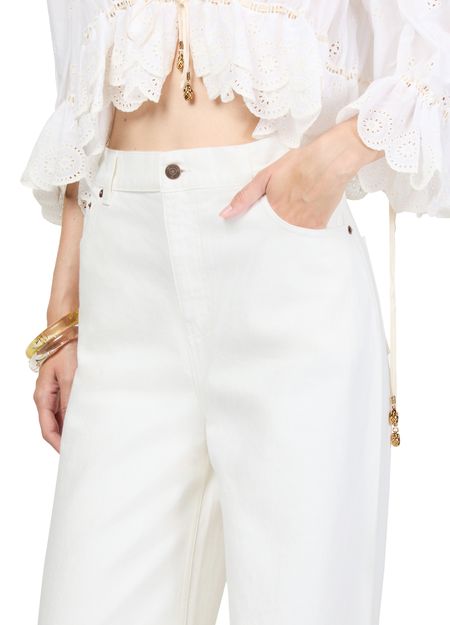 Reimagine Chloe's straight leg jeans, a masterpiece of style with a high-waisted fit and wide cut. These jeans boast an ankle length and visible stitching, complemented by a buttoned zipper closure and belt loops. With a back leather logo and practical pockets, they redefine modern elegance.