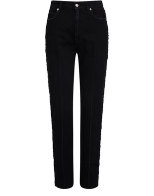 Alexander McQueen's regular-fit pants are a stylish and versatile addition to any wardrobe. The five-pocket style and belt loops offer functionality, while the metal finish and button fastening add a touch of edge. The high-waisted fit provides a flattering silhouette, making these jeans a must-have for any fashion-forward individual.