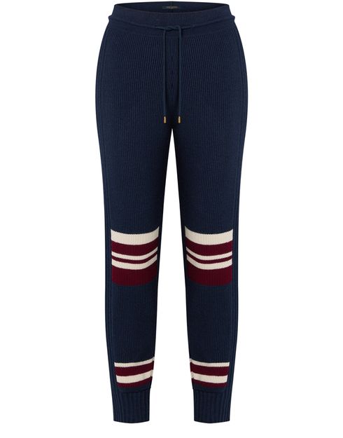 Timeless jogging pants reimagined as sophisticated loungewear. Crafted in a classic fit from a soft, sumptuous cashmere blend in a spirited mixed-rib knit for a casual textured finish. Graphic striped accents at the knees and ankles introduce a playful retro detail, while an LV snowflake patch completes the look with a seasonal signature.
