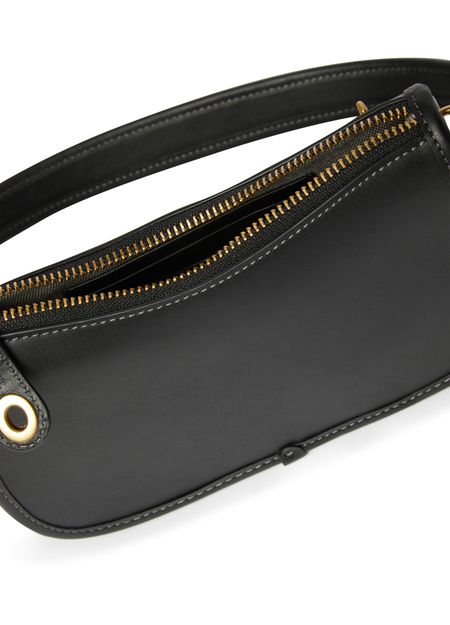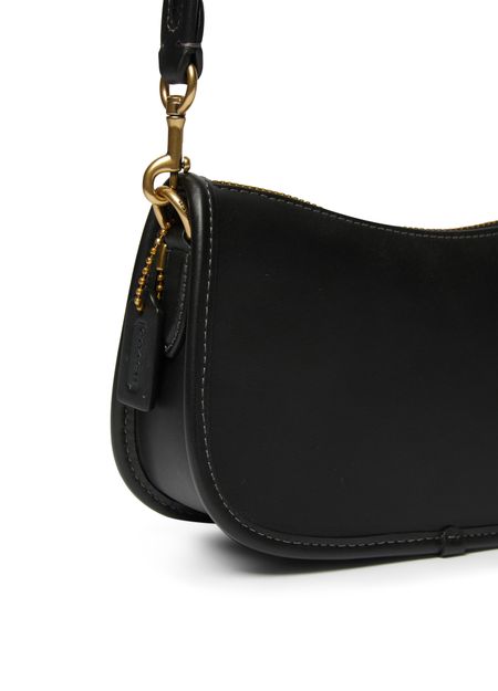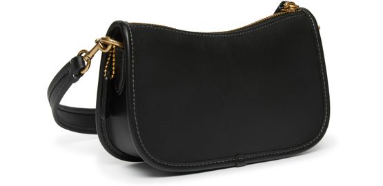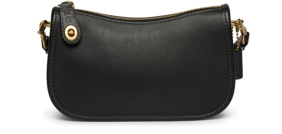 Coach's Swinger 20 is a stylish and versatile handbag with a detachable strap, allowing it to be worn on the shoulder or carried by hand. Its visible stitching adds a touch of craftsmanship, while the zipper closure ensures security. The gold finishes provide an elegant touch to this classic accessory.