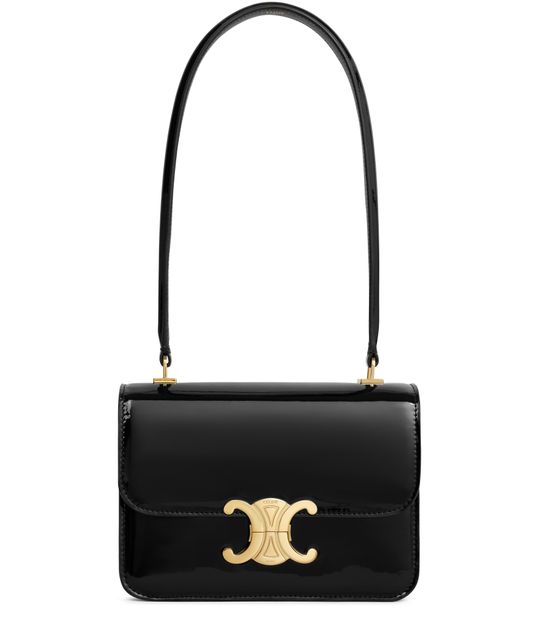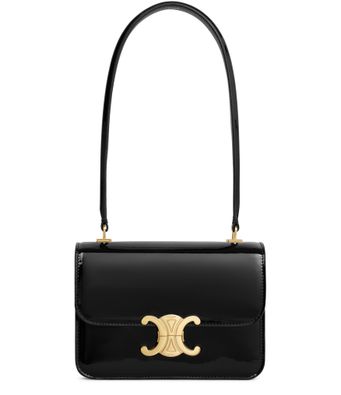 Celine's Teen Garance bag in patent calfskin is a stunning blend of elegance and functionality. With its striking Triomphe metallic closure, it offers both shoulder and hand carry options. Inside, discover three spacious compartments, an inner zipped pocket, and a flat pocket, making it the perfect companion for any occasion.