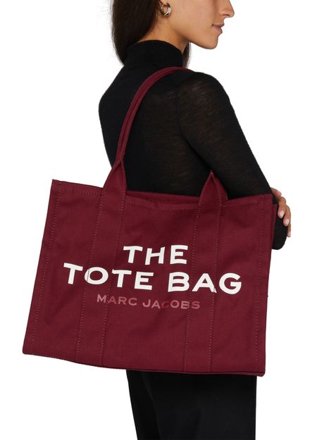 The Marc Jacobs Large Tote bag is a spacious and stylish shopper/tote bag designed for everyday use. It features two sturdy handles for easy carrying and a front logo for added sophistication. With a handle height of 24cm, it is perfect for wearing in the hand, making it a versatile and practical accessory. This silhouette is intended to fade and relax over time for an...